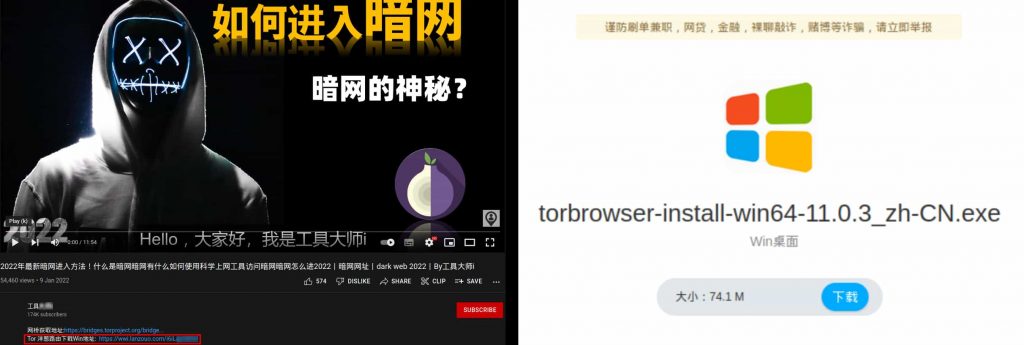 در توضیحات یک ویدیو، پیوندی به نصب کننده مخرب Tor Browser وجود دارد که منجر به دانلود نرمافزار مخرب میشود. در ٩ ژانویه ٢٠٢٢، این ویدیو توسط عوامل تهدید در یوتیوب آپلود شد.
